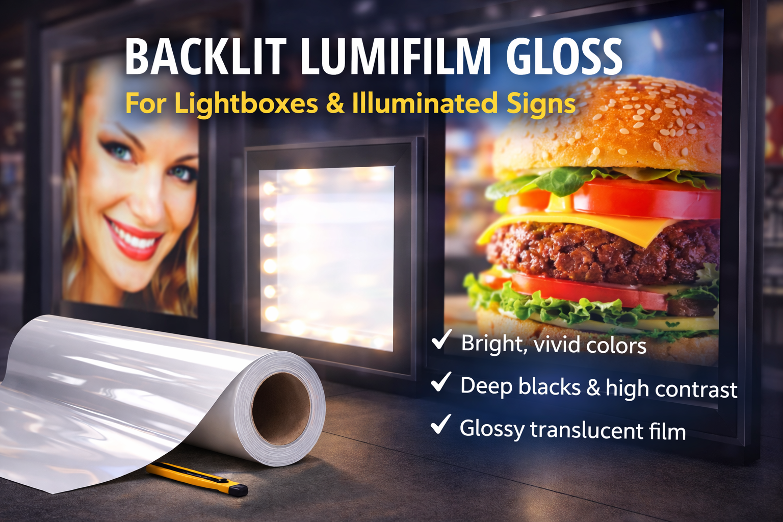 El Backlit Lumifilm Gloss es una película traslúcida de alto brillo diseñada para aplicaciones retroiluminadas. Está pensada para producir colores intensos, negros profundos y excelente difusión de la luz cuando se instala en cajas de luz o sistemas backlight.